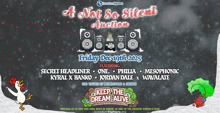 The BoredomFighters Foundation are back at our favorite Denver soundsystem for an evening of magic as we raise funds to send music producers and studios into schools around Colorado that are lacking stable music programs.