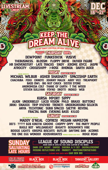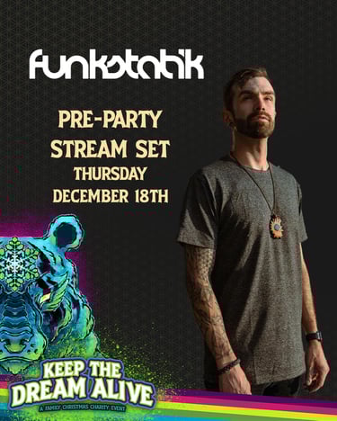 Keep the Dream Alive began early on in GRiZ's hiatus, drawing inspiration from his past charity events. What started as a passion project between friends is now a global community of artists, creators, & advocates who raise money and share their art with the world via livestreamed events.